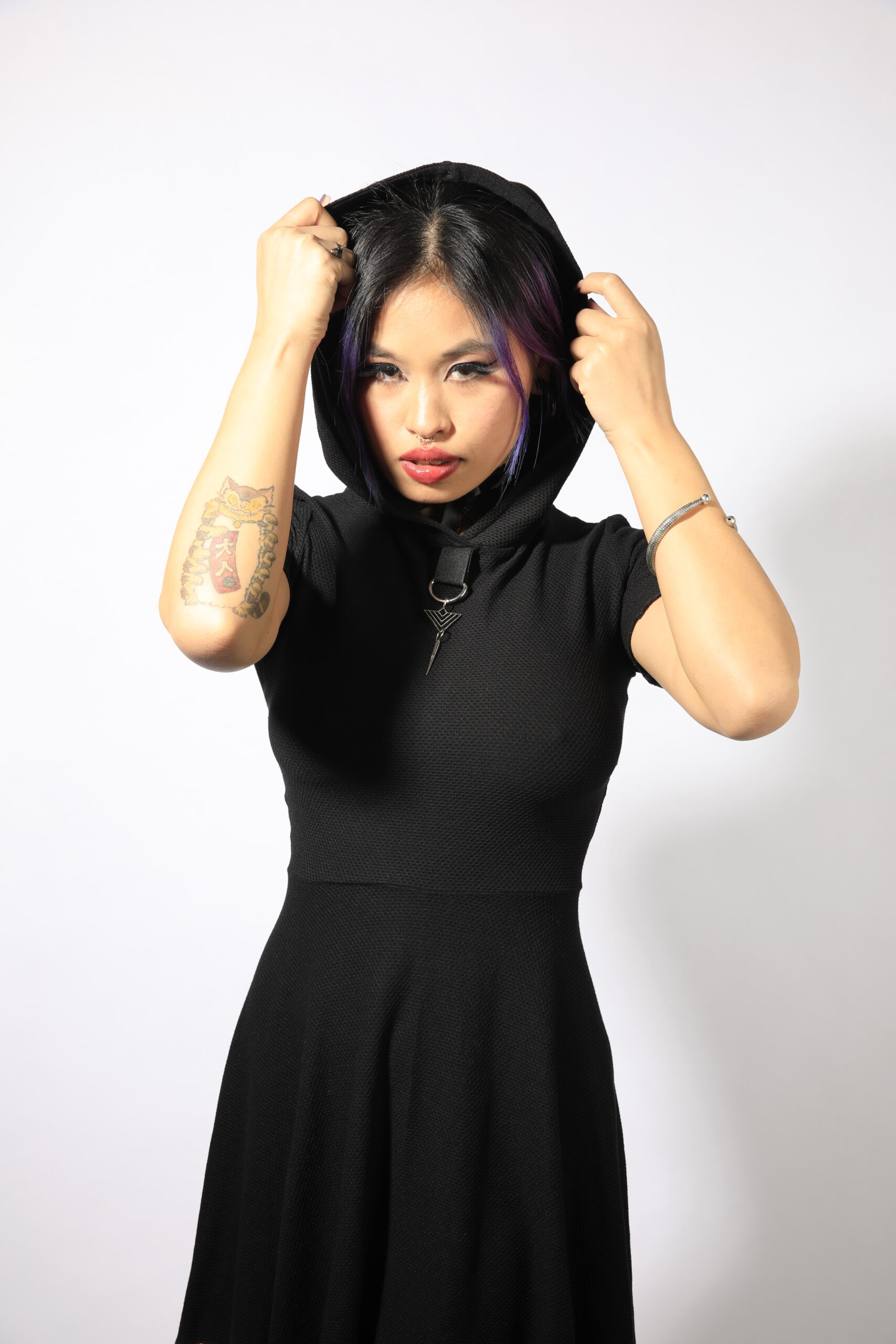 • שמלת חצי פעמון עם קפוצ’ון
